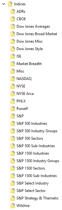 In addition, Premium Data users can create their own Custom Folders which are based on lists of securities that are stored in text files in the "Lists" folder. |
