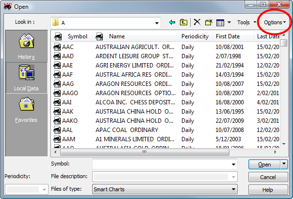 With MetaStock™ version 11 (and earlier versions) a user simply went File > Open to have direct access to the