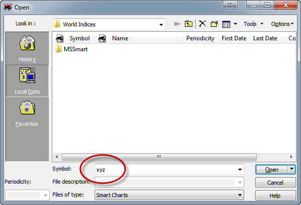 When you first bring up the File > Open dialog, MetaStock™ puts the cursor in the Symbol box.