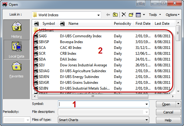 With MetaStock™ version XV, the user is required to import the contents of a local data folder as a list of